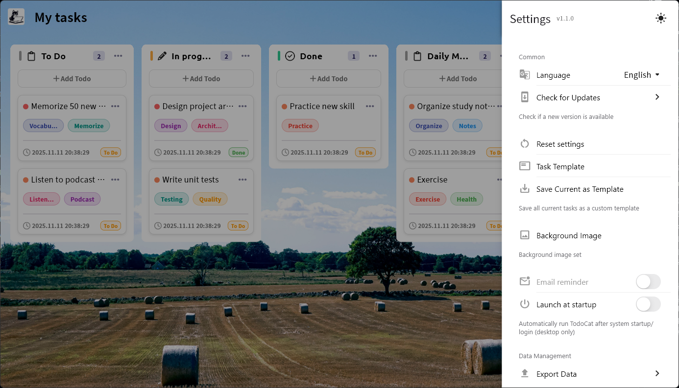Todo Cat is a simple yet powerful task management app with an elegant task panel interface. Organize your work, track progress, and boost productivity with style.